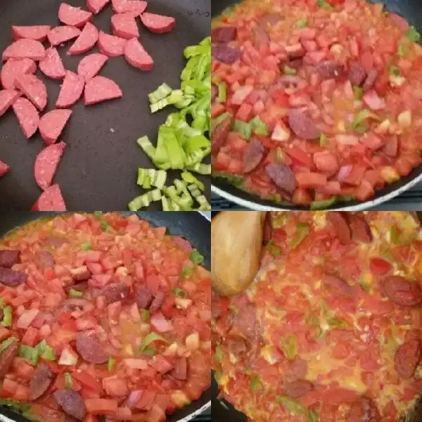 Öncelikle sucukla biberleri doğrayıp az yağla kavuruyoruz. . Küp doğradığımız domatesleri ekliyip pişmesi bekliyoruz. Domatesler pişince çırptığımız 2 yumurtayı ekleyip karıştırıyoruz. Son olarak rendelediğimiz kaşarları menemenin üstüne serpip kapağını kapatıyoruz.. kaşarlar eriyince altını kapatıyoruz. Ve hazırr...Eki Görüntüle 2035601