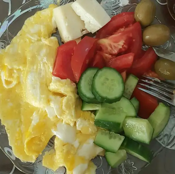 Kahvaltımızı gelsin az yağlı iki yumurta eşliğinde yarım salatalık yarım domates iki dilim peynir şekersiz çay 3 zeytin afiyet olsun