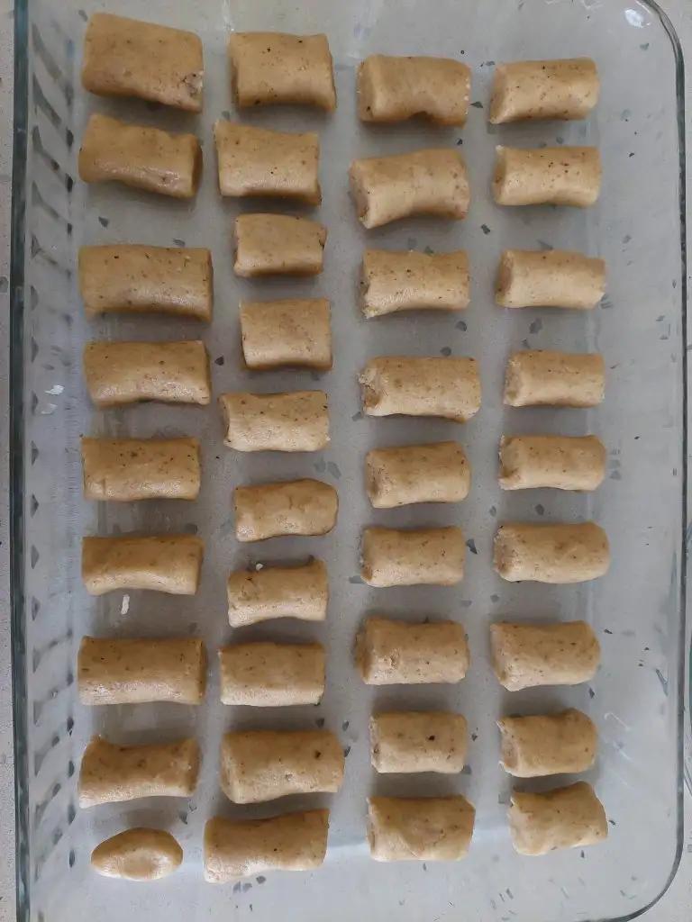 bu seriti istedigimiz buyuklukte kesip tepsiye diziyoruz ben 3 parmak genisliginde kestim 37 parca cikti
