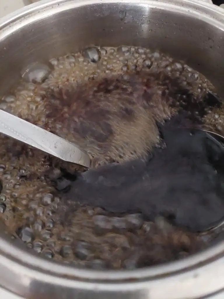once serbetimizi hazirliyoruz cunku sogumasi lazim sekeri,suyu ve pekmezi karistirip ocaga aliyoruz.