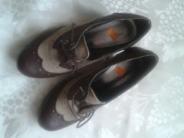4-.numaralı resim kahve açık krem desenli etiketi üstünde 48 tl.etiketi üstünde ayakkabı 15 tl.36 numara