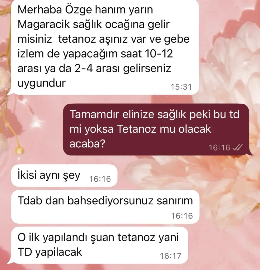 Ben TD olcam. Tetanoz Difteri olandan ol dedi doktor bana