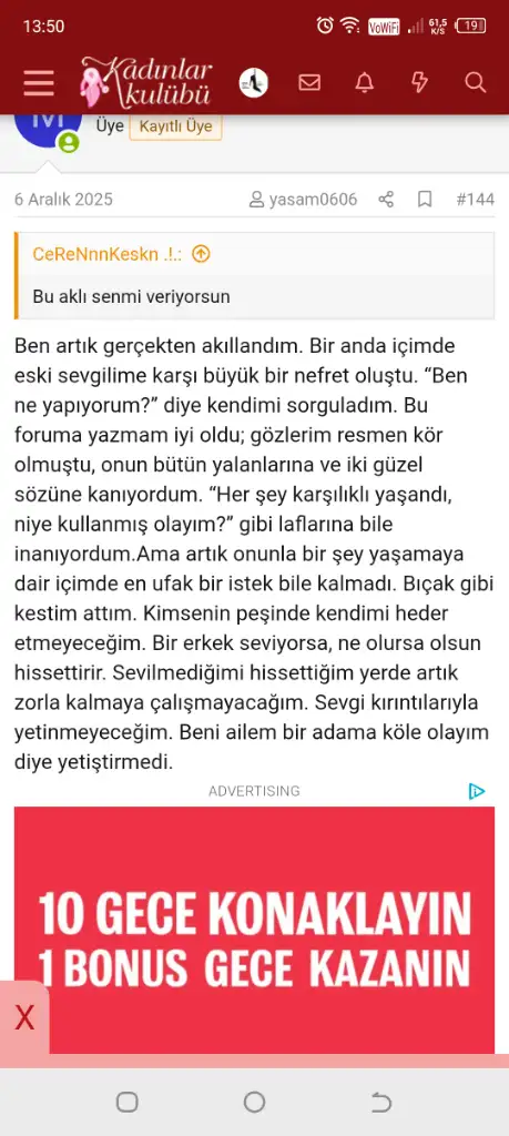 İçten içe hâlâ onu istediğim doğru,yalan söyleyemem.Ama kabul etmedim.Sonra yine bildiğiniz gibi konuşmaya başladı…“Özel günün bitsin görüşürüz” falan.Benim özel günlerimi takip ediyor.İnsan bunu yaşayınca anlıyor sevilmekle istenmek çok başka şeyler.
