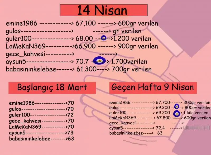 olmaz, hayır.......:47: :47: 2. benim, kaptırmam kimseye. pazartesi günü 63 tüm. bugün de 61.5 geldim şekerim. hatta dünkü kg yazsak (61.3) iki tane birinci çıkarmış... :21: