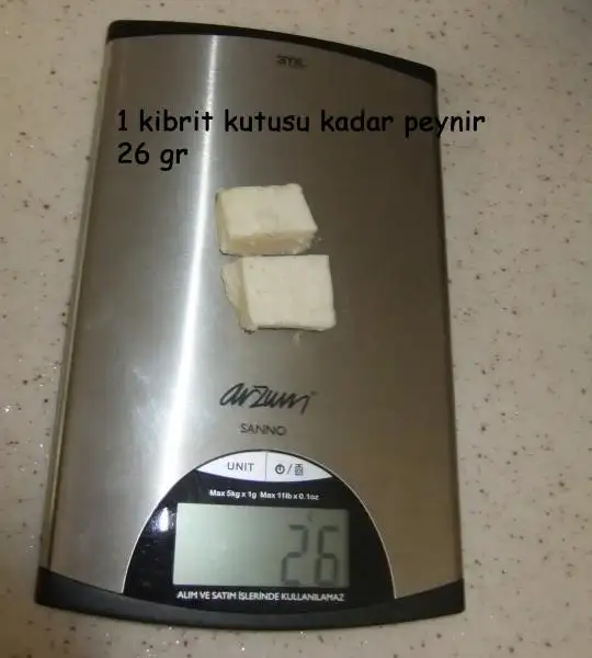bu da 1 kibrit kutusu kadar peynir onun gramı