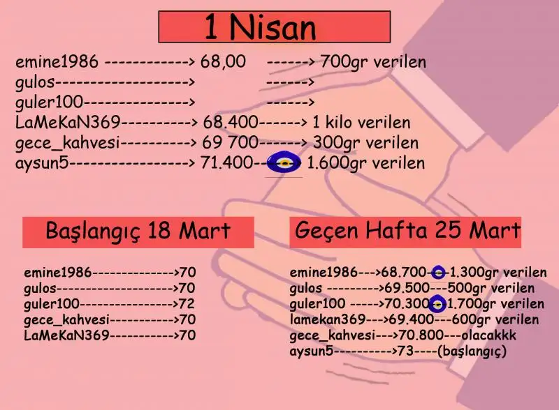 hafta sonu kötü geçti 68,00 kg.la 1 nisana giriyorum