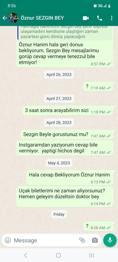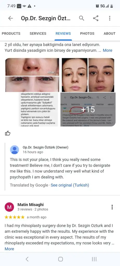 Emin olun piyasa onun gibi sahtekar ve para düşkünü doktorla dolu , bunu bizzat deneyimledim ben deDoktor Sezgin Ozturk kadar rezil,sahtekar doktor gormedim!! Instagramdan yaziyordum ona surekli, cunku burnumu mahvetti, Beni instagramdan engellemis! Googledan yorum yapmaya calistim, yorumlarimi silmis ve hemen kendi cevresine 5 star sahte yorumlar yaptirmis. Arkadaslar bu adama dair gordugunuz hersey duzenbazlik, goz boyamak. Size ekran goruntulerine kadar paylascam. Adam vergi de kaciriyor zaten.