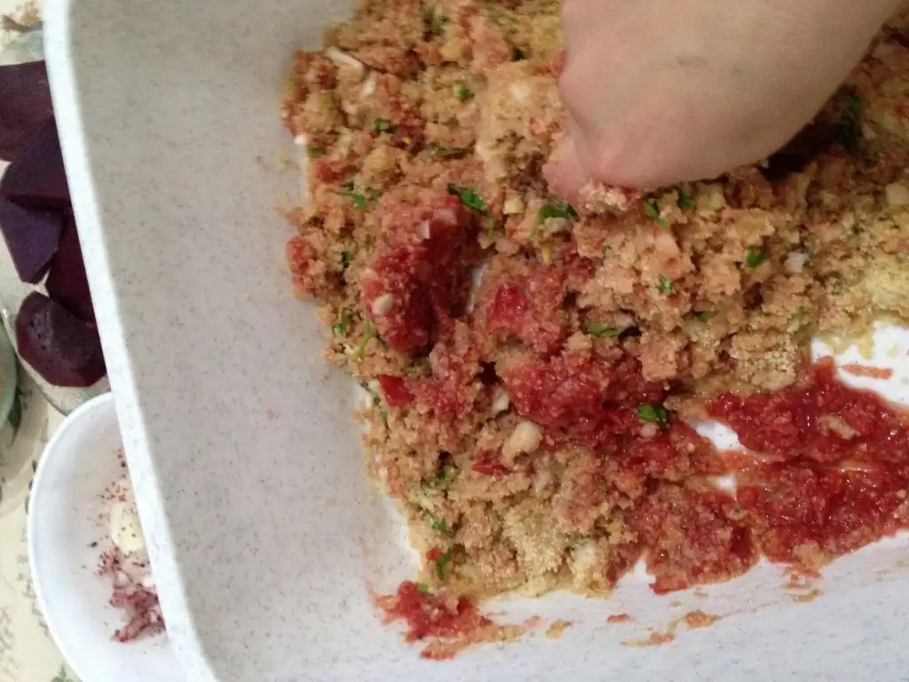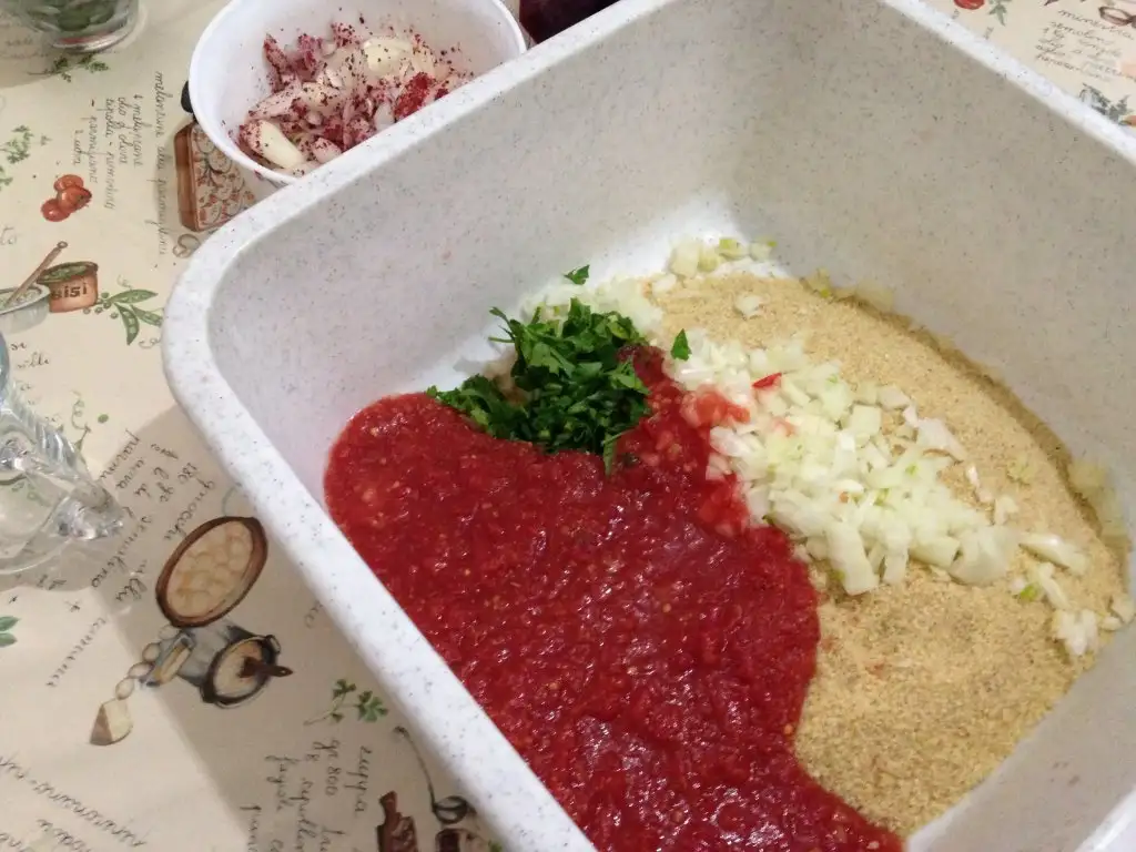 https://www.facebook.com/pages/Benim-TaKıLaRıM/746670695440200?fref=ts beğenirmisiniz lütfenTeşekkür ederim yorum için. Mersin tarafında o şekilde ıslatarak yapılıyor ama bizim memlekette o makbul değildir tadı çiğ köfte gibi yoğruldukça geliyor ıslatılınca bulgurda haşlama gibi bir tat oluşuyor kış mevsiminde olduğu için rengi falan çok kırmızı olmadı yazın kırmızı domateslerle çok daha güzel oluyor