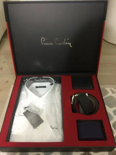 Sıfır Kutulu, Etikeli Pierre Cardin Nişan Bohça Seti XL bedendir. Gömlek ,kıravat ,kemer ,cüzdan seti = 190 Pijama Seti Siyah pijama seti ,kilot ,atlet ,kilot ,çorap = 165
