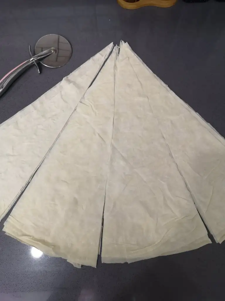 Yufkaların büyüklüğüne göre eşit 12 veya 16 parça olacak şekilde kesiyoruz.