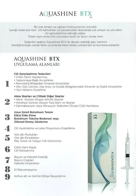 özet geçecek olursam aquashine içerigi bir nevi vitaminlerden oluşan karışımdır. Cildinize canlılık getirir hücreleriniz yenilenmiş gibi oluyor nem stoğu da cildin ihtiyacı olan şey hele ki yaş ilerledikçe.Antioksidanda cildimizi ışıl ışıl mutlu yüz ifadesi sağlıyor.işlem biraz acılı ama sinek ısırığı gibi.kanı görüp korkmayın sonrası muthiş yeniden doğmuşsunuz gibi