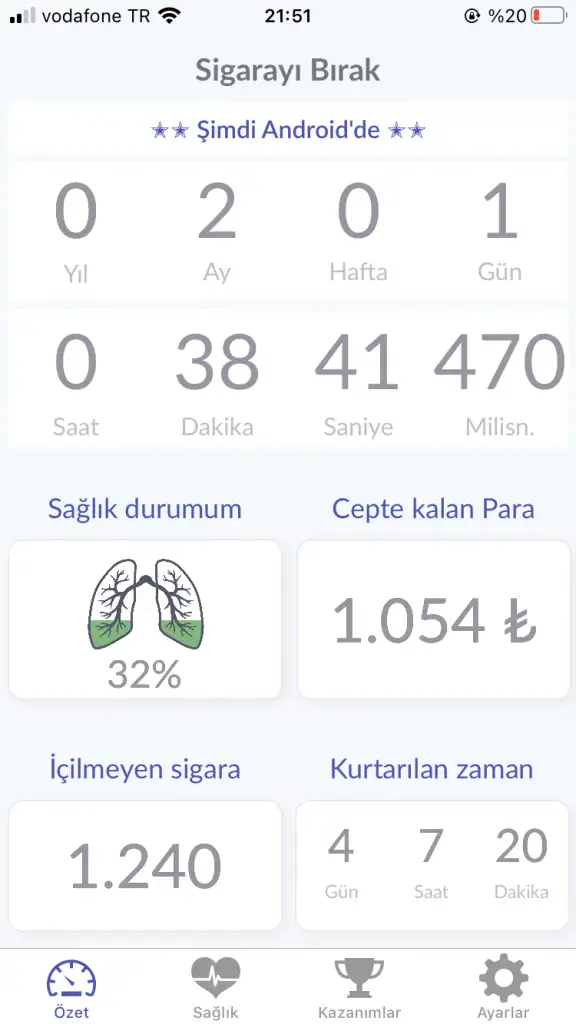 Ulaşırsın hele şöyle 2 aya yakın ol eskisi gibi aklına bile gelmiyicek bide mis gibi oluyo o oku yok dinç kalkıyorum sigara kullanırken hep telefonda oyun oynardım şimdi bütün oyunları sildim meğer sigarayla endesklemişim bütün oyunları şimdi zamanımda paramda bana kalıyor :)Ne güzel tebrik ederim ben dana 5 rakamına ulaşamadım