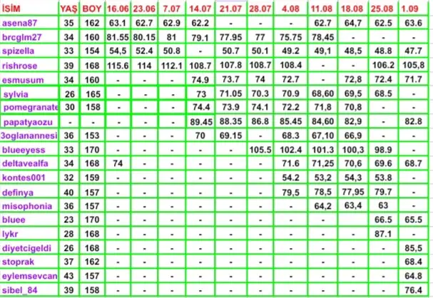 Sıkı bir takiple katilmak isteyen arkadaslar varsa yas, boy, kilo bildirimi yaparsaniz tablo olusturacagim.