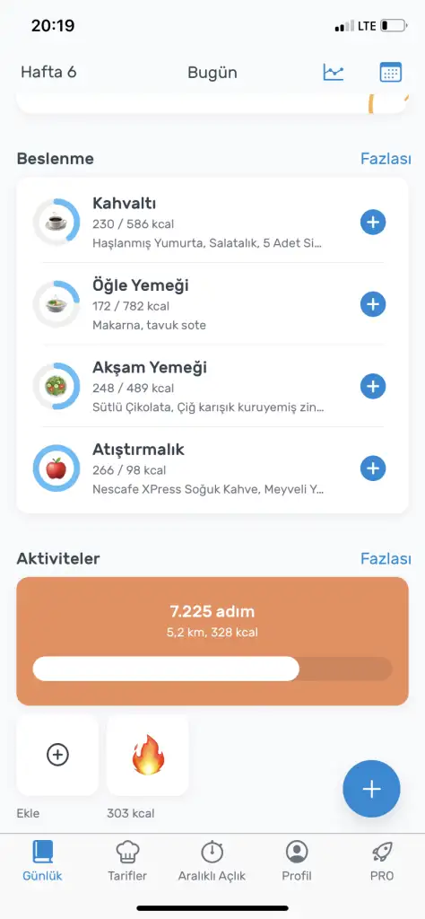 Bugünki menüm aşağıdaki gibidiruygulamadan takip ediyorum.