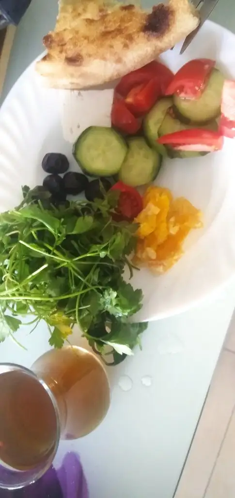1 adet haşlanmış yumurta, 5 zeytin, 1 parmak kadar beyaz peynir, domates, salatalık, biber, üzüm
