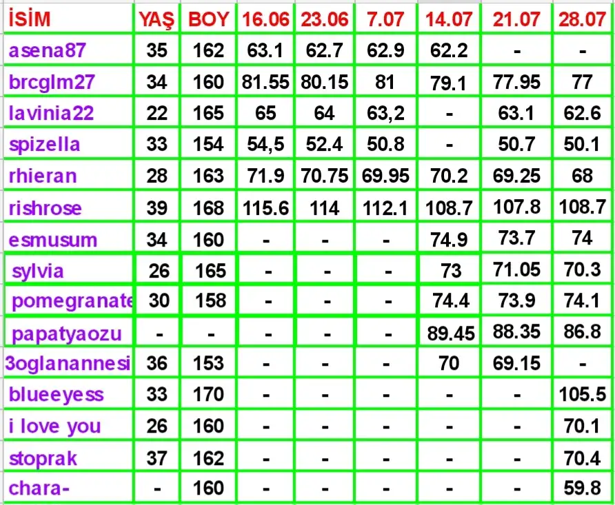 Kilo veren herkesi tebrik ederim, vermeyenlere de bu hafta mola sayalim,