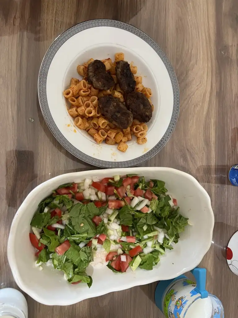 Öğlen bamya yemeği vardı onu ve dünden kalan hindimi yedim azıcık patlıcan ezmesi yedim