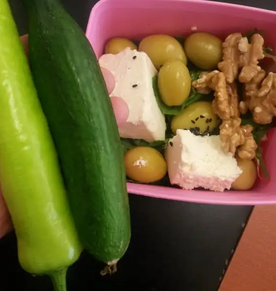 Ayrıca peynirin hepsini yemedim, salatalık biber, 4 zeytin ve biraz roka yedim, rokalar görünmüyor.