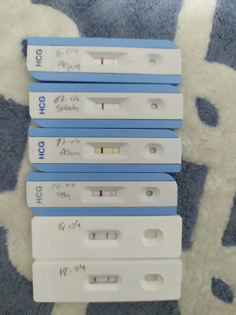 Arkadaşlar 2 gün önce akşam test yaptım. Silik bir çizgi çıktı. Testi tekrarladım gitgide koyulaştı çok şükür. Ama kontrol çizgisi kadar da belli değildi. Bugün yaptıklarım çok daha belirgin. Geçen ay reglim 21 Martta oldu ve daha günüm gelmedi. PCO vardı ama hiç tedavi görmedim. Kimyasal gebelikten korkuyorum