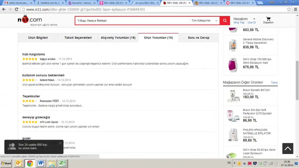 Siz eminim biran önce kullanmak için sabırsızlanıyorsunuzdur ama biz de yorumlarınız için sabırsızlanıyoruz. Umarım memnun kalırsınız hayırlı olsun. Bir de n11'de hangi mağazadan satın aldımız? Biliyorsunuz mağaza isimleri varmerhaba arkadaşlar. Uzun araştırmalar sonucu Silk n Glade 150000 satın aldım ve ürün elime bugün ulaştı. Hatta n11 den çok uygun bir fiyata satın aldım. Performansını kullandıktan sonra size bildiririm. Umarım güzel haberler veririm