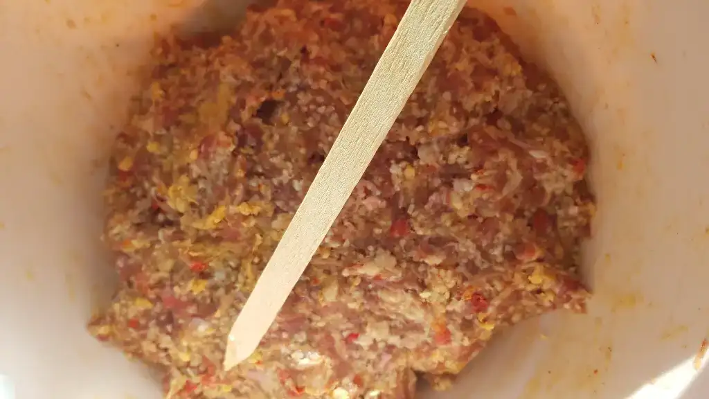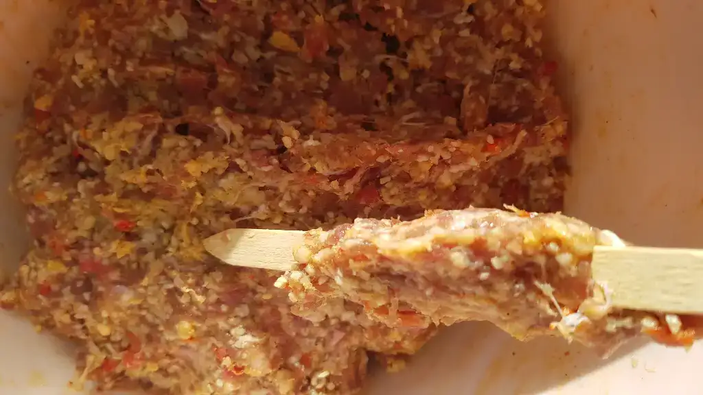 Daha sonra avuc ici buyuklugunde parcalar koparip kebap sislerine takarak yuvarlak bi sekil veriyoruz