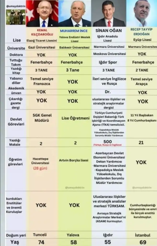 Sayın Sinan Oğan senelerdir siyaset içinde çok kısa zaman da büyük bir kitleye ulaştı yalnız halen duymayan duysa da zaten kazanamayacak oyumuz boşa gitmesin deyip her iki tarafta kangren olmuş 2 ana adaydan birini tercih etmek zorun da hissedenler var