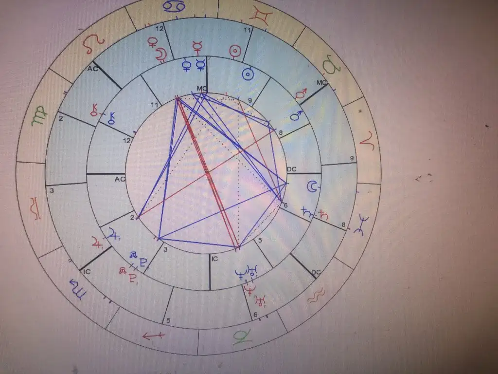 Ekliyorum sinastri haritamızı. Mavi ben kırmızı olan onun haritası.