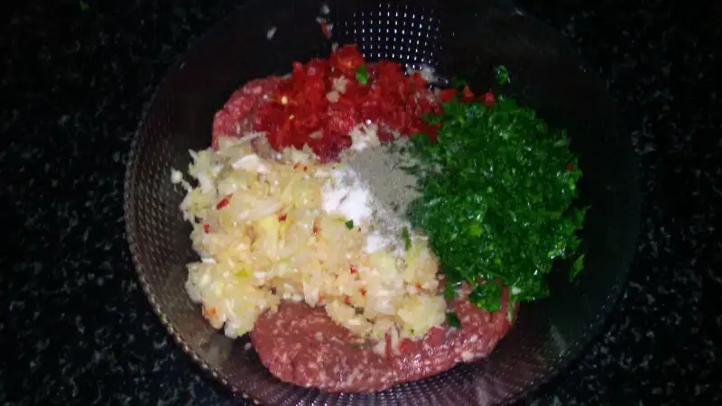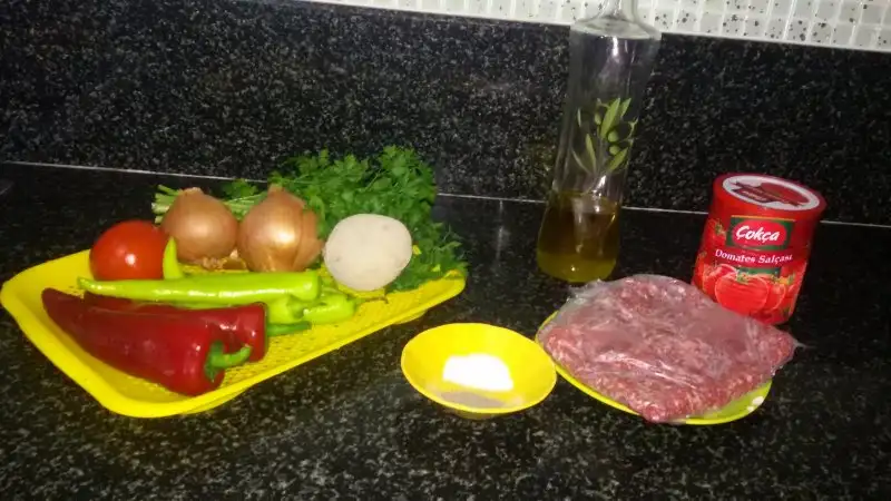 Tuz, karabiber Eki Görüntüle 1977868 Öncelikle bi tane kırmızı biberi, 1 soğanı ve yarım demet maydonozu ayrı ayrı rondoda çekip yoğurma kabına ekliyoruz. Kıymayı, tuzu,karabiberi ve çektiğimiz sebzeleri de ekleyerek iyice yoğuruyoruz.Eki Görüntüle 1977874 Hazırladığımız karışımı pişireceğimiz kaba alıyoruz. Ben toprak güveç kullandım ama eper elinizde yoksa borcam, Aliminyum tepsi yada herhangi bir fırın kabı kullanabilirsiniz. Eki Görüntüle 1977875 elimizle iyice batırıp her tarafını eşit şekilde olmasını sağlıyoruz. Sonra üstüne domates, soğan ve patatesi dilimleyerek diziyoruz.Eki Görüntüle 1977951 üzerlerine zeytinyağı gezdirip önceden ısıtılmış 200 derecelik fırına ilk etapta yarım saat pişiriyoruz Eki Görüntüle 1977952 sonra 1 bardak su ve bir kaşık Salçayla sos hazırlıyoruzEki Görüntüle 1977953 salçalı sos kaynayıncaya kadar pişiriyoruz kaynayınca altını kapatıyoruz.Eki Görüntüle 1977954 ilk aşamada yarım saat pişen yemeği çıkartıp biberlerini dizip sebzelerin üstüne salçalı sosu döküyoruzEki Görüntüle 1977955 sonra tekrar fırına veriyoruz. Ortalama 20 dk daha pişiriyoruz. Benim fırınım 50 dakkada pişiriyor ama siz pişip pişmediğini anlamak için patatesleri kontrol edin. Patates pişti mi tamamdır.
