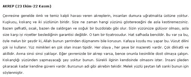Evet söke söke yanlış bilgiyi aldın, burada bu burçsun dediler bende tamam dedim, kabullendim (çok ender yaparım bunu)