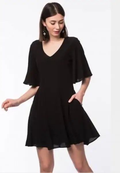kolsuz v yaka düz bir elbise giyin,