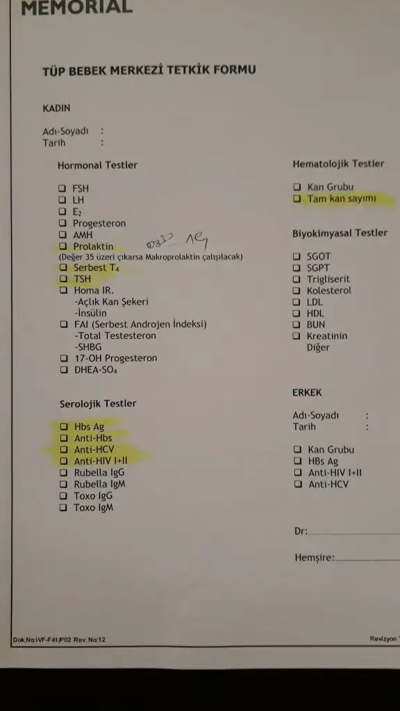 Bana doktorum göndermişti listeyi Umut hoca saat ve açlık yazmıyordu ben öğleden sonra tok karnına vermiştim tahlili açlık kan şekerini aç karnına 10_12 saatlik açlıkla yapmıştımKızlar hemşirenin bana yolladığı tahlil listesinde prolaktin in yanında 08.30 aç yazıyor yani saat sekiz buçukta mı vermem lazım bu tahlili
