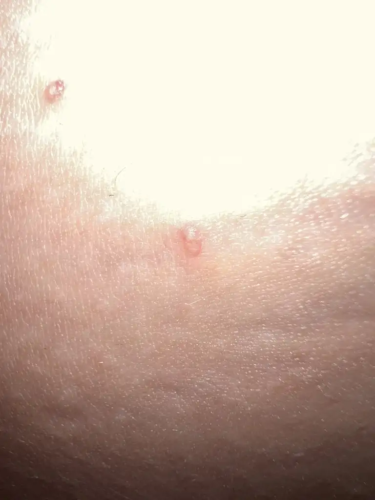 kızlar görüntü için kusura bakmayın lütfen. ne yapacagımı bilemedim bir kaç aydır bu şekilde sivilcelenmem var bacak aramda. arada bir bir kaç tane cok büyüyor normal iltihaplı sivilce gibi oluykr elimi vuramıyorum cok agrıyor. molloscum mu sizce