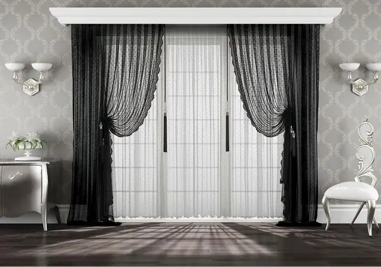 Siyah beyaz koltklarma uygn yaptrdğn yan fonları olan siyah perdem var