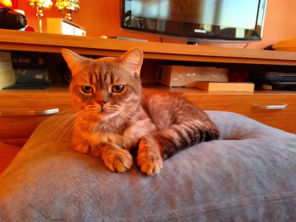 British Shorthair olan (Gufi) erkek, tahmini 1 yasinda. Diger kedilerle bir sorunlari yok. Bu kez duzgun insanlar ciksin karsisına