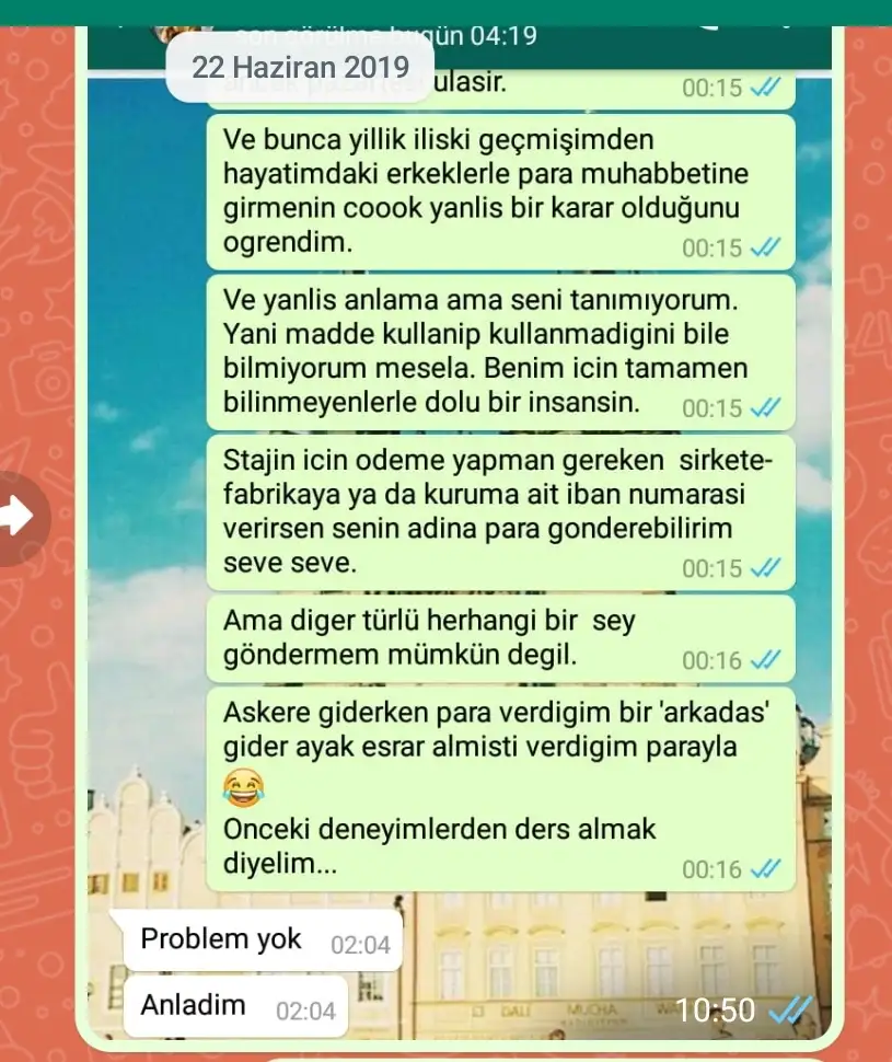 Sevgili hanımlar, sizden para isteyen sevdiğiniz biri olunca hiç gardinizi düşürmeyin hemen akıllı bir arkadaşınıza danışın. Bir de onla yorumlayın bakalım, gönderecekseniz de öyle gönderin