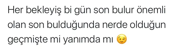 Kızlar sizinle konuşmak iyi geliyor o yüzden konu açtım biliyorsunuz unutmaya çalışma süreci yaşıyorum arada özellikle akşamları kötü hissediyorum kendimi cumartesi günü çok kararlı bi şekilde düşüncelerimi değiştirmeye çalışmaya başladım hatta ekteki gibi son bi paylaşım yaptım bidaha da yapmamak için kendime söz verdim ama dün akşam babam iş yerinden biriyle konuşuyordu konuştuğu kişinin ismi eski eşimle aynı birden telefonu açıp ismini söyleyince o sandım babamın karşısında birkaç saniye kalakaldım sonra abim kim o deyince iş yerinden dedim mutfağa girdim kalbim o saniyelerde resmen durdu ya ben niye böyle oluyorum tüm uğraşım onu görmeme bile gerek kalmadan ismini duyunca bile boşa gitmiş oluyor annem bayram için memlekete gitti kadının aklı bende korkuyor arıyor mu diye soruyor ama aramıyor gıcık oluyorum aramıyor derken aramaması onu rahatlatıyor ama beni sinirlendiriyor bu süreçte normal mi bunlar yoksa takıntılı mıyım