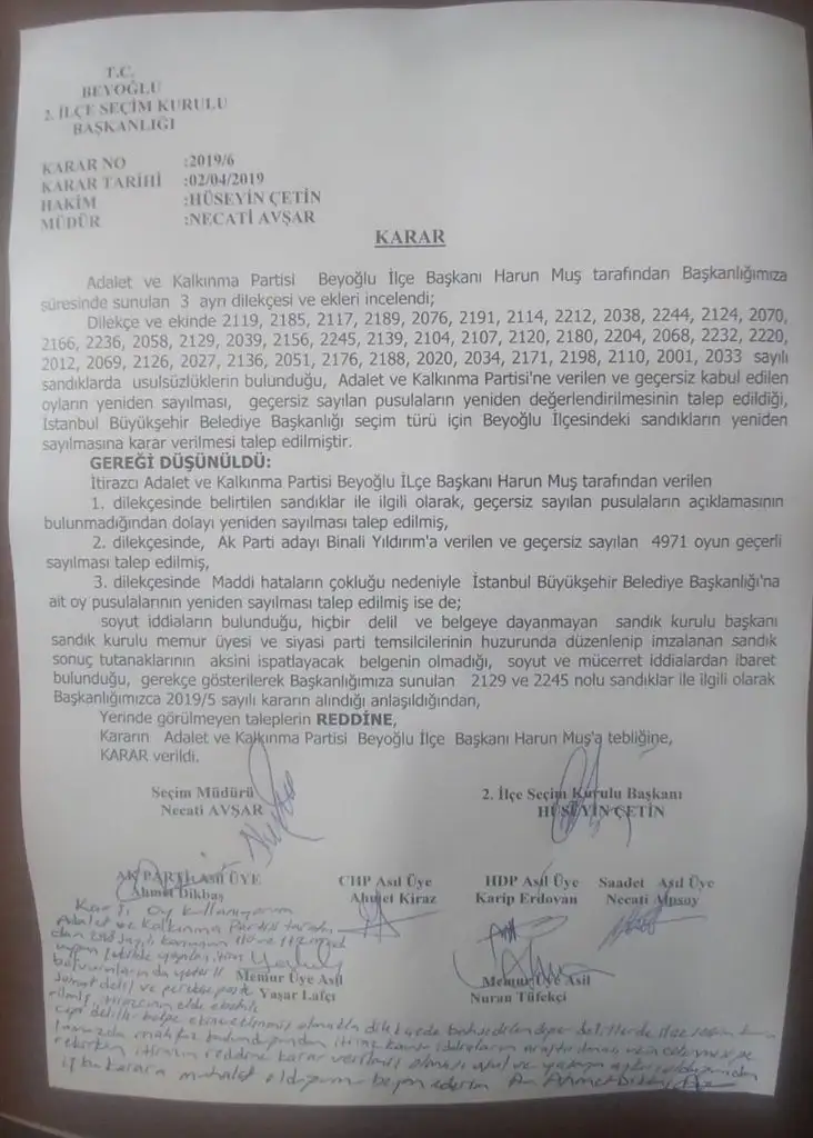 Simdi tc.de okudugum kadariyla istanbulun ilcelerinde gecersiz oylar yeniden sayilacakmis
