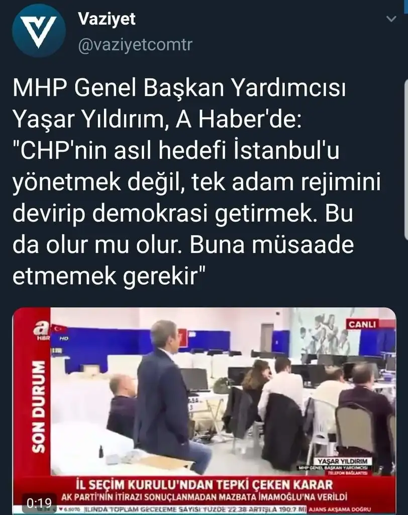 Bugün Mhp genel yardımcısi amaçlarını söyledi aslında Chp nin. Siz duymadiniz mi?