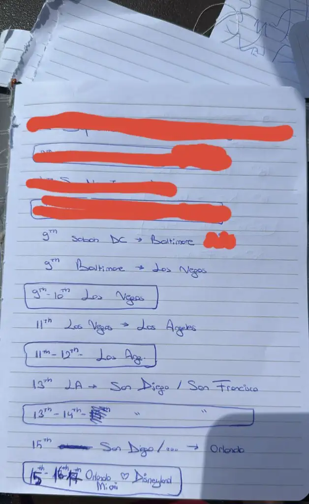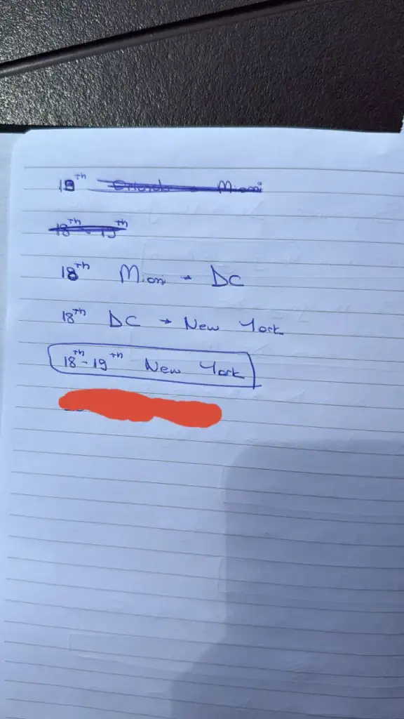 (Arkadaşımın seyahat planını aşağıya bıraktım.)