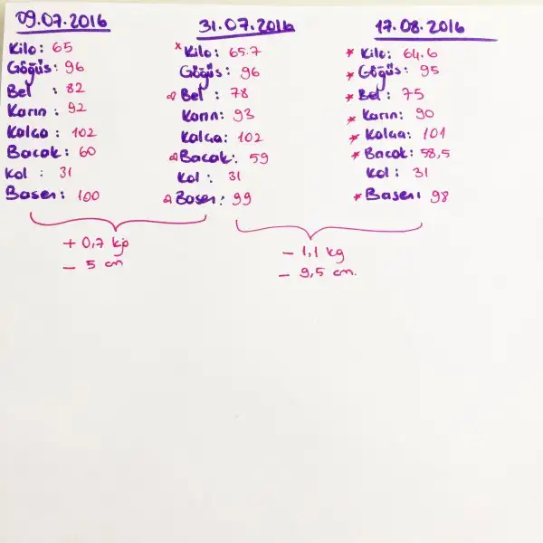 ilk başladığımda haftanın 3 günü spor yapıyordum ama bazen yürüyüş bazen jillian bazen de sadece ev egzersileri falan. 3 hafta kadar devam edebildim sonra sporu bıraktım. diyet kısmı ağırdı biraz ama kilo falan veremiyordum. sonra biraz karaya yakın beslenmeye başadım. bire bir uyamasam da hazır gıdaları falan hayatımdan çıkardım. porsiyonlarımı küçülttüm. en en geç saat 8 den sonra su hariç hiç bişey sürmedim ağzıma. düzenli olarak da jillian a geçişim 15.08.2016 da oldu. regl öncesi şişliğim var ayrıca şuan. regl sonrası daha iyi olacağını düşünüyorum.