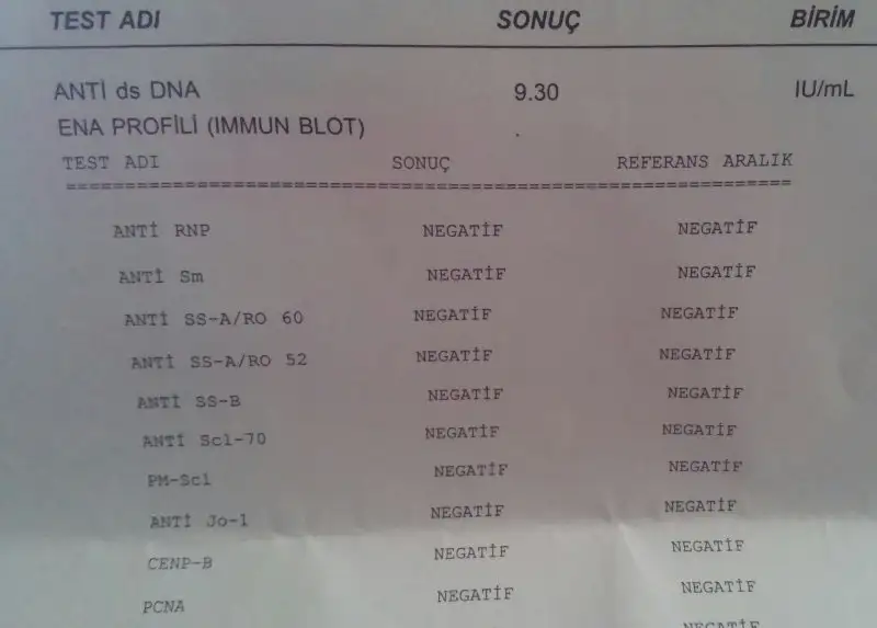 Canım bende igne dozumun ikinci gebeligimde az geldi diye düşünüyrm 3500 hibor kullndm bde coraspin 100 iciyrdm ama plaquenil kullanmadm.Ama belki de düşük yapacaktım byle denk geldi.Dedigin gibi de ilk bebegim ilacsiz sekilde yedi ayini doldurmuştu hic bilmiyrdum pihtilasmamim olduğunu hersey nasip Rabbim nasip ederse ins hersey guzel olur.Canım sonuçlarına göre 2 gende mutasyon yani pıhtılaşma ve Lupus antikoagülan (pıhtılaşman) pozitif. Senin iğne dozunun çok iyi ayarlanması gerekir bana göre. Az gelmemeli doz, zaten çok dozun bebeğe zararı da yokmuş sende kanama yapabilirmiş. Az olmasın önemli olan. Ana testin pozitif .. bunun negatife dönmesi hamileleik açısından iyi olacak. İlacını asla bırakma. Ana testi lupusun aktivitesi ile ilgilidir. Diğer otoantikorlarının Negatif olması da iyi özellikle anti-ssa ve anti-ssb bunlar bebekte düşük ihtimalle de olsa kalp bloğu denilen hastalığa yol açıyor..