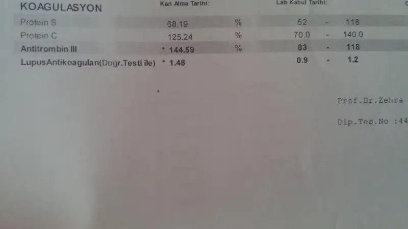 o zmn tabi hic bilgim yok kanmda pihtilasma mi var aklimn ucundan gecmezdi hicbirsey kullanmadm yani..genetikte test sonucu ogrendim genetik testmde pihtilasmam var factr v den alelale tasyr yaziyr heterezgt homozgt ve lupus antiagulan ckti bide ramotologa yonlendirildim.