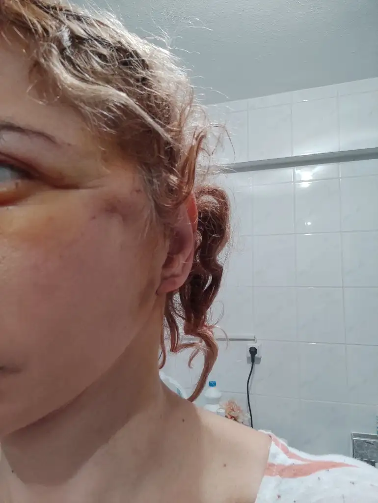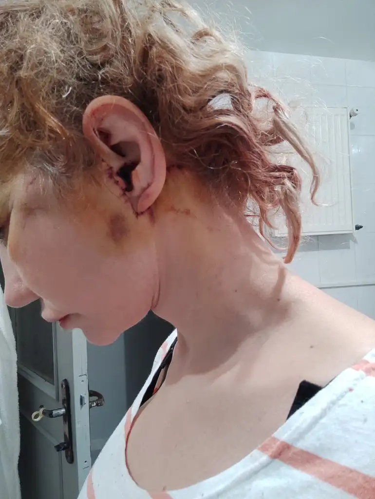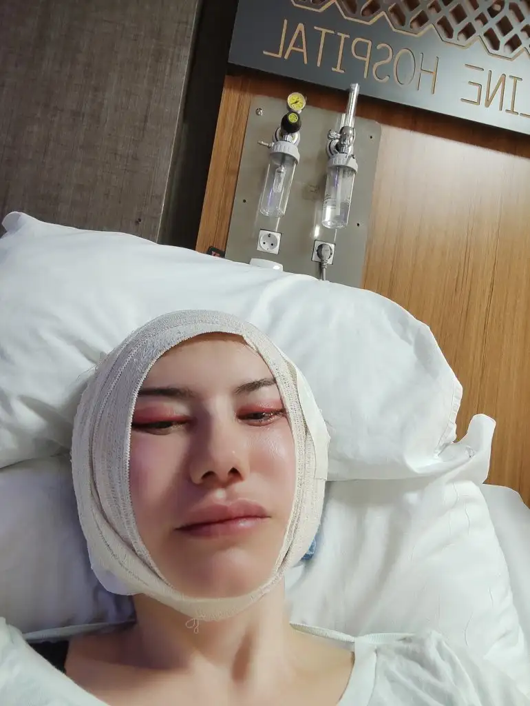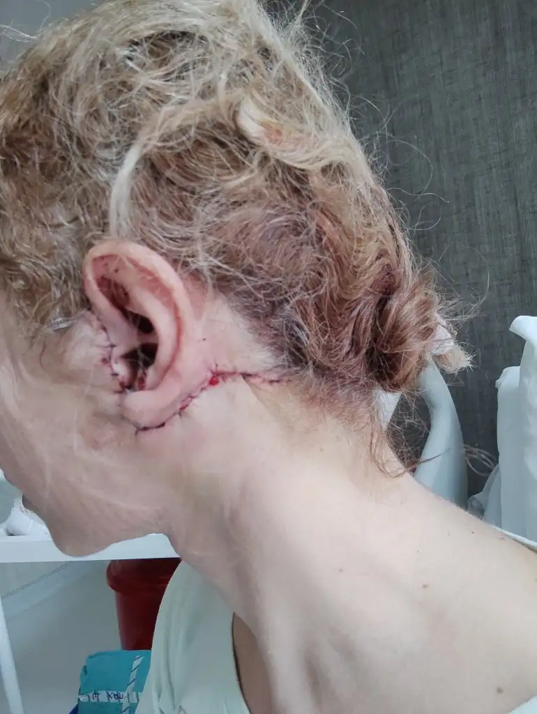 Kulaklarım şiş, normal olarak... İlk gün daha büyüktü, neyse ki küçülüyor. Hocaya sordum hatta,kulaklarımı takıp çıkardınız mı dedim, güldü,ellemedik zaten orada işimiz yok dedi. Sadece kulak hizasından, favori altından açılıp, işlem yaptık dedi. Bu arada yüzümün sağ tarafı sola göre şiş ve pansumanda açtık, boynum MUHTEŞEM 🤩 Çene hattım süper. Meme kesilerime de pansuman yaptım,temizler şükür.
