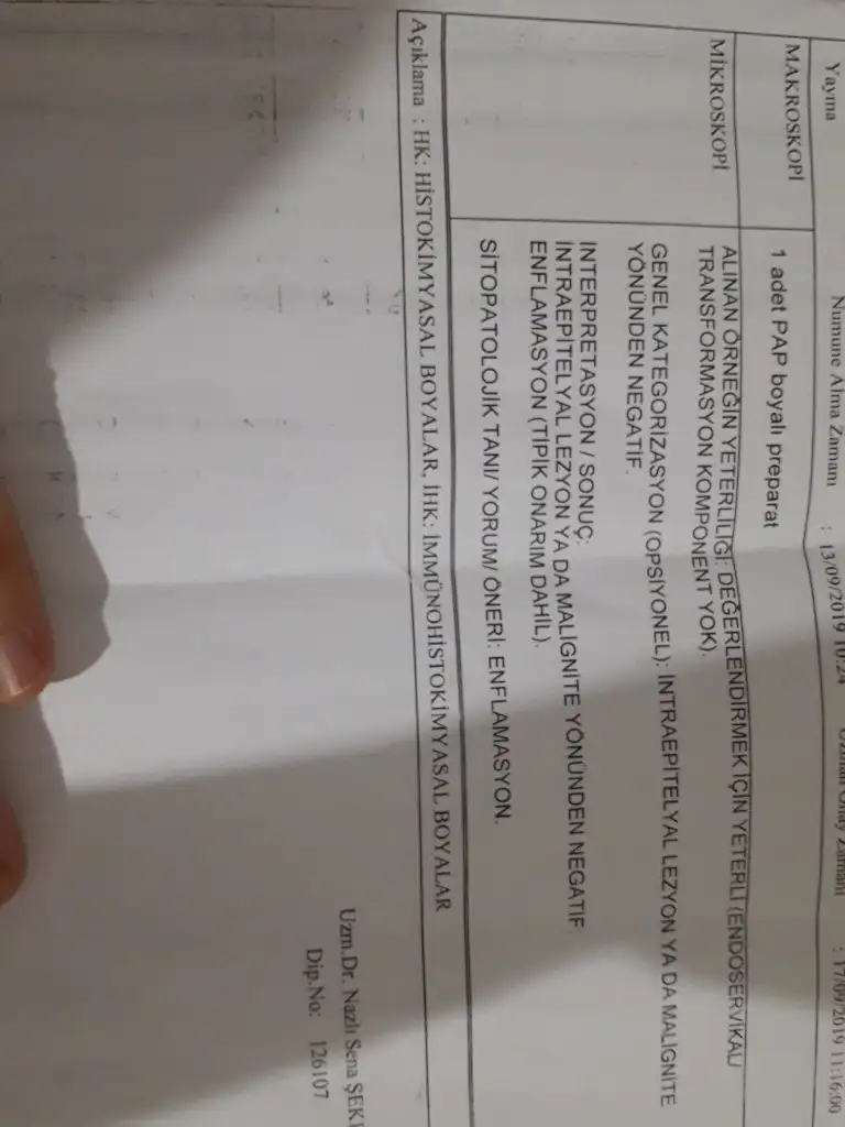 kızlar smear testi yaptırdım ama tanı kısmında enflamasyon yazıyor doktor sonuca baktı gayet sagliklisin dedi ama sizce ne olabilir ordaki yazi tedirgin oldum eve gelimce okudum yoksa ordayken sorardim size sormak istedim bilgisi olan yardimci olabilir mi aceba sonucun fotografini yukledim ilk kez smear yaptryorum o yuzden bilmiyorum k.bakmayin