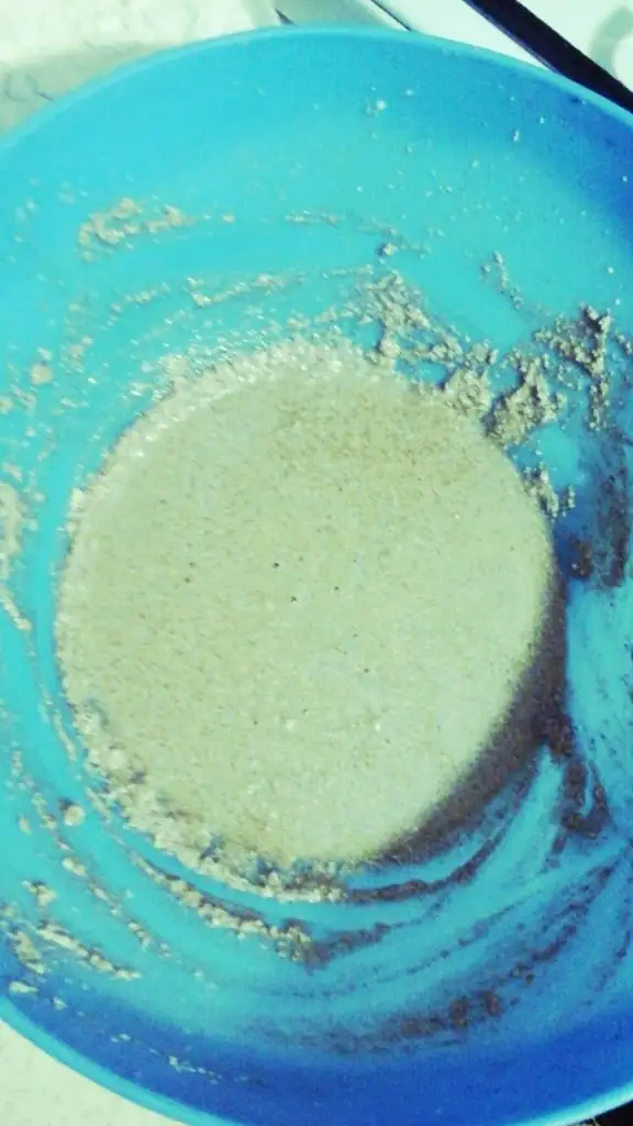 Yumurta , pudra şekeri , buğday nişastasını ve eritilmiş margarini bir kaba alıp iyice karıştırıyoruz.