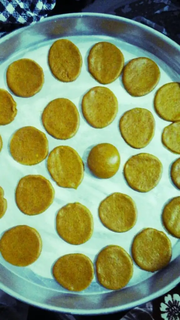 Hamurları top haline getirip oklavayla inceltiyoruz, bardak ile yuvarlak şekil verip , yağlanmış tepsiye kurabiyeleri dizip fırına veriyoruz. Bitter çikolatayı eritip göz ağız yaptıktan sonra yenmeye hazırdırAfiyet olsun, ben biraz fazla pişirdim ama neyse