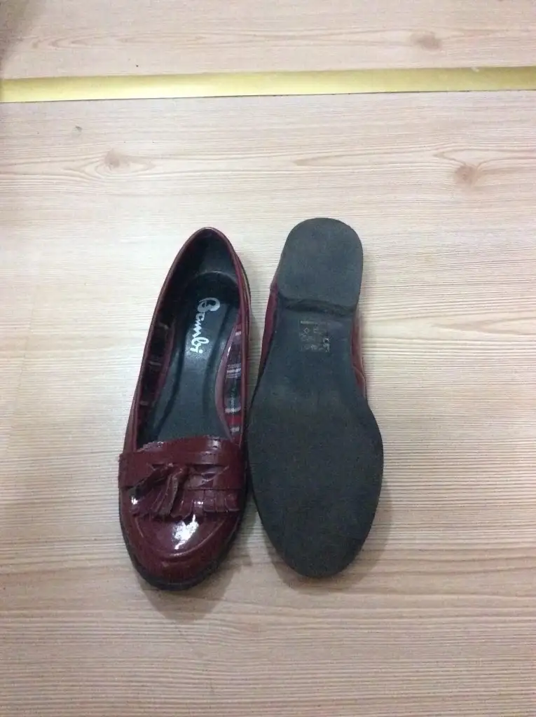 Bambı bordo rugan ayakkabı, 37 numaraya uyumludur, 1 kere gıydım, 25 tl.