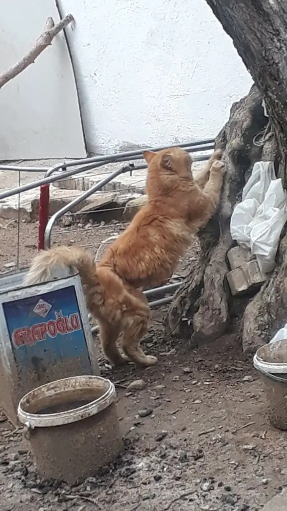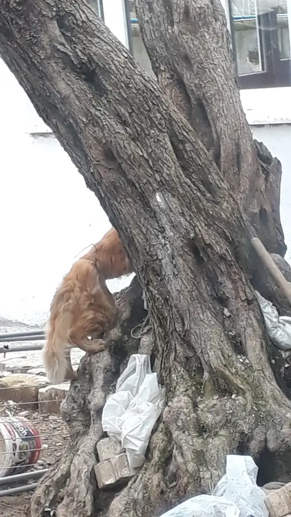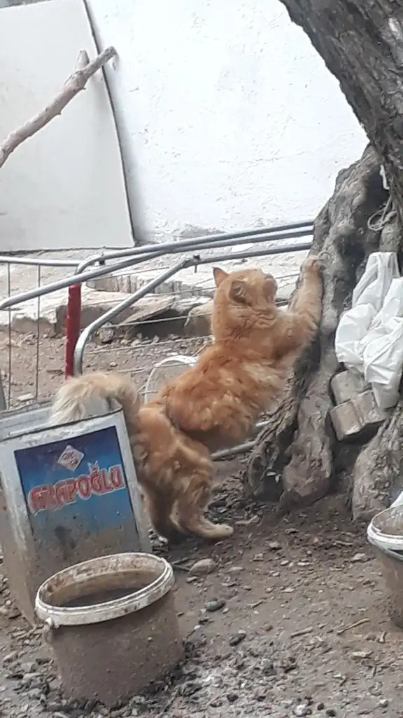 Yiyecekle çağırıyorum malesef gelmiyor. Kaçıyor. Ağacın tepesinden çatıya çıkıp gözden kayboldu. Günde bir iki kere görüyorum dünden beri. Hayvan hakları derneklerini arasam gelseler kedinin de net bi yeri yok ki nasıl yakalanacak hic bilmiyorum fikri olan?