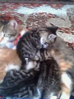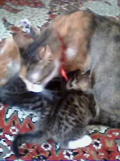 bu pisilerde işyerimdekiler..yalnız annenin köpek tarafından tek bacağı parçalanmış komple..mikropta kapmış.3 gündür antibiyotik yapılıyor.iğneler bitti şimdi pansumanla idare ediyoruz..henüz yaralı ayağının üzerine basamıyor ama basıcak inşallah..yavrusunuda eşimle sokak sokak aradık ve nihayet dün bulduk..2 gün ayrı kaldılar ama şimdi çok mutlular..akşama kadar yiyip içip uyuyolar ve bende onlara baktıkça huzur buluyorum..