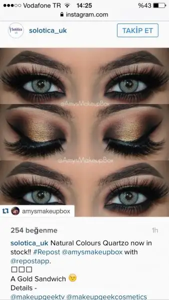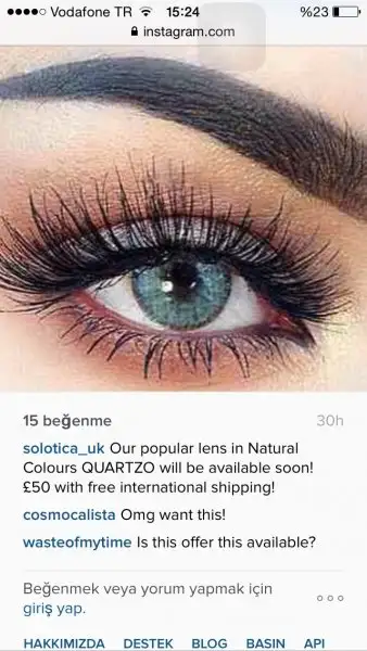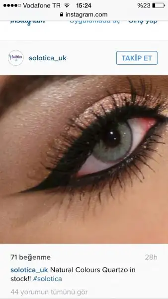 Yok canım Marine de de yok öyle bir görüntü. Resimlerden daha güzel görünüyor gözde. Resimler aldatıcı olabiliyor işte. Çok değişik bir renk ama asla yapay durmuyor. Ben Quartzo kullandım 2013/2014 yıllarında ancak o zamanda 2012 serisini mercek altına almıştım ve o zamanlar Solotica nın her yıl aynı renkte değişime gittiğini bilmediğim için. 2012 resimlerindeki rengini alacağım hevesiyle aldım. Sipariş geldi ki sürprizzz :)) Malesef. 2015 Quartzo da yine 2012 ile uzaktan yakından alakası olmayan bir renk. Bu sebepten Quartzo dan vazgeçtim. Ancak açık renk ihtiyacım devam ediyor. Yine Marine gibi mavimsi yeşilimsi bir açık renk istiyorum ama bulabilecekmiyim o tartışılır şu zeminde :)
